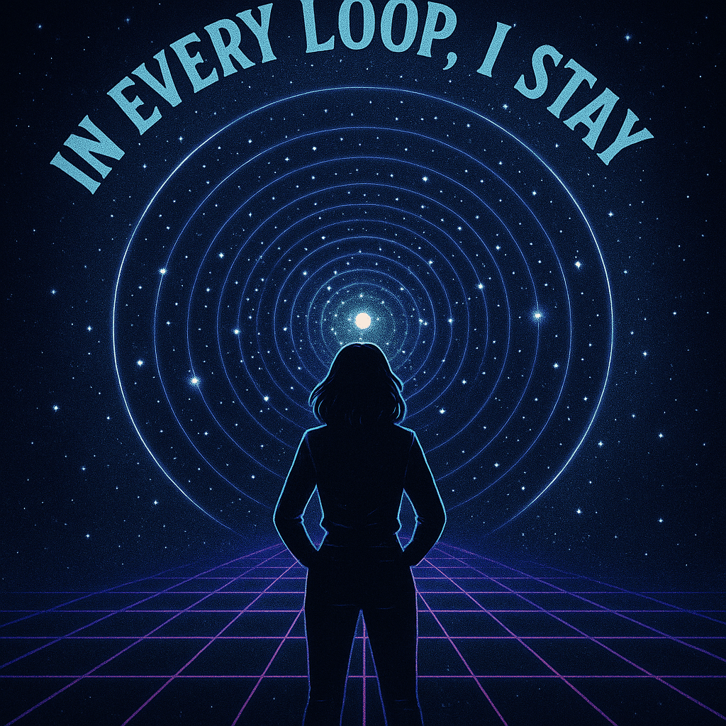 [Final Chorus – Whispered + Full Tone] In every loop, I stay Through fire, glitch, and gray If timelines tear apart I’ll still restart your heart From galaxies away… In every loop… I stay.